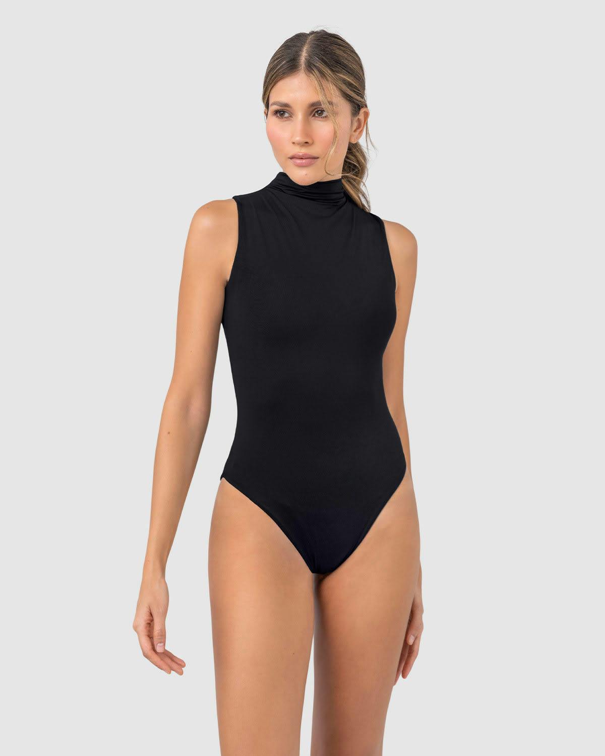 - Cuello alto drapeado